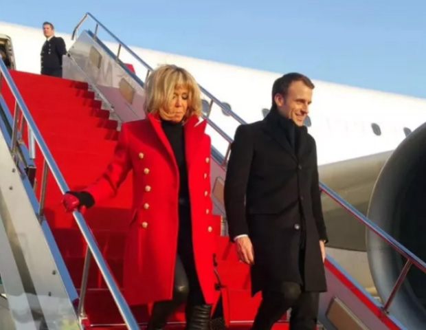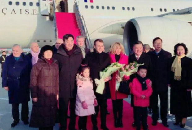 图:法国总统马克龙夫妇抵达中国