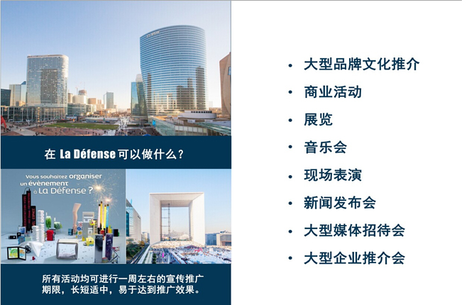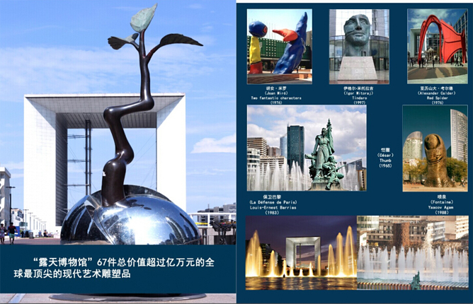 而目前,正值中法两国建交50周年,在法国推介中国系列活动正轰轰烈烈,德维吉昂先生特意委托法中交流促进会,将其关于巴黎拉德芳斯的这一创意顺利演变成中华文化国际推广计划的一部分。巴黎拉德芳斯大凯旋门广场也因此成为“美丽中国”走向世界的国际舞台。